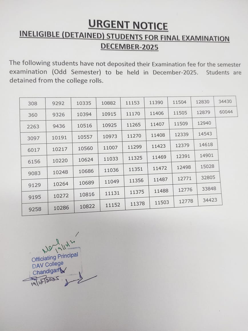 Welcome to the Student Portal of DAV College Chandigarh